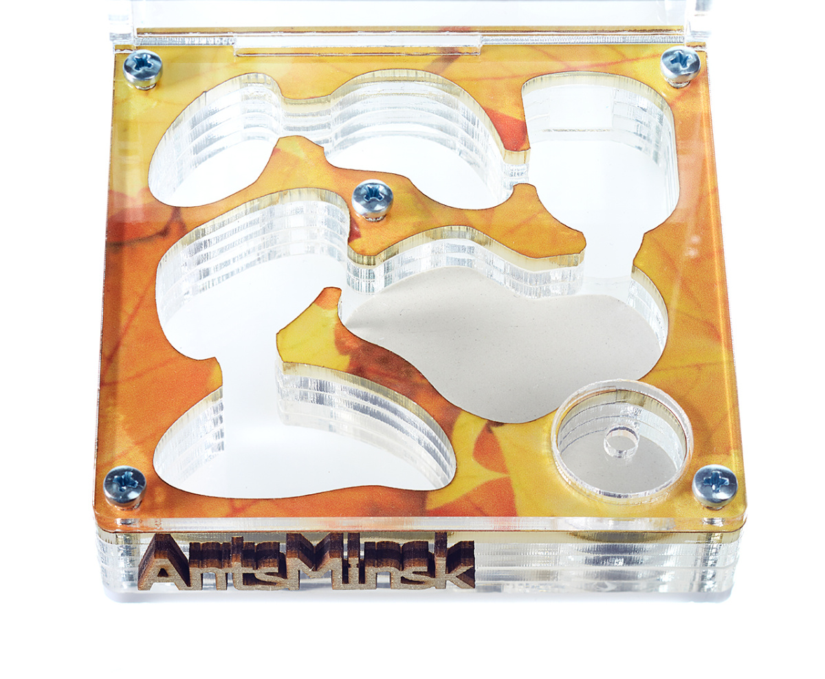 Муравьиная ферма XL autumn (гипсоакриловая ферма с системой автоувлажнения). Данный тип фермы отлично подходит для муравьев Messor Structor (жнецы). С помощью гипсовой плиты этот вид муравьев получает необходимое количество влаги, а также она необходима для размачивания семян, которые являются основной пищей для муравьев-жнецов.