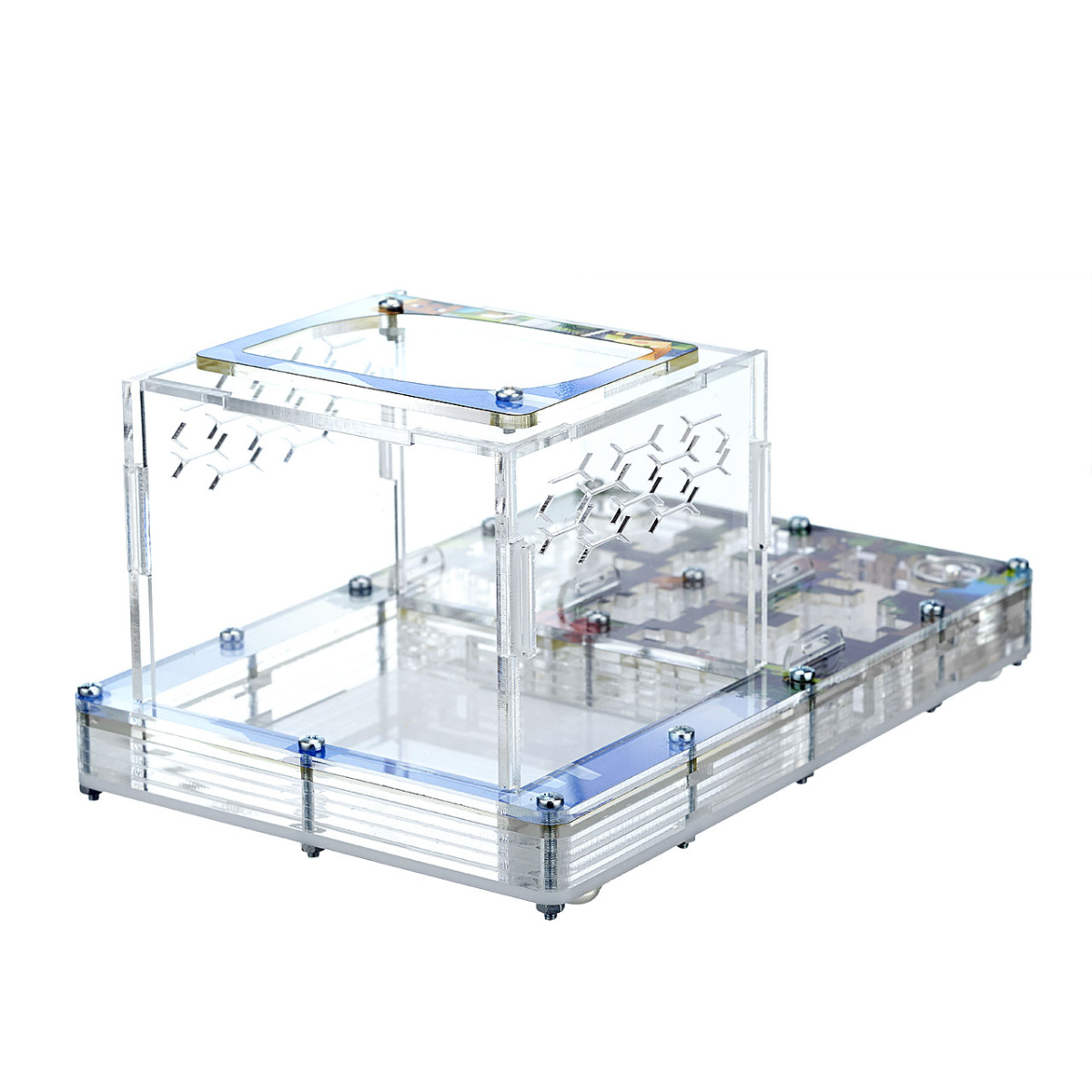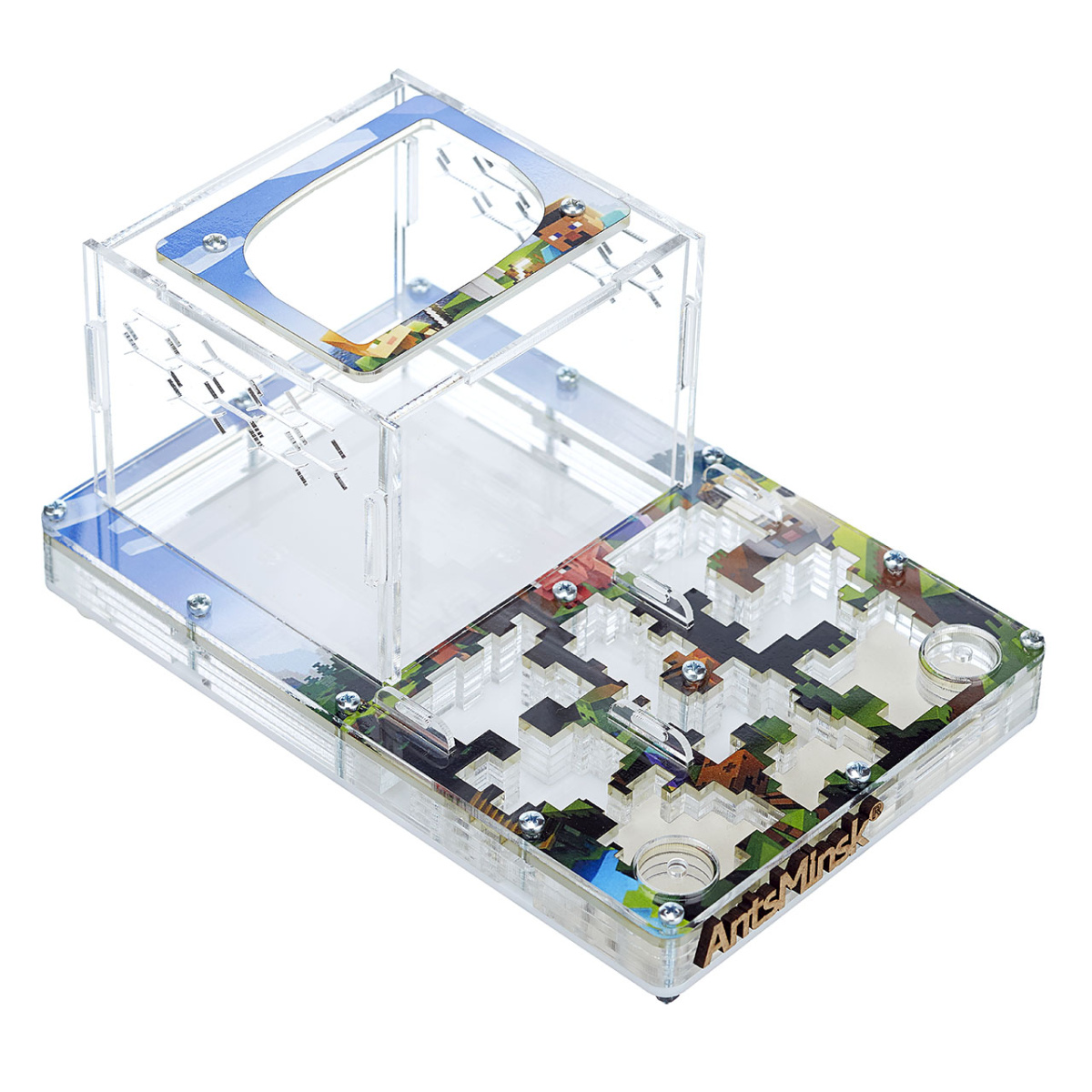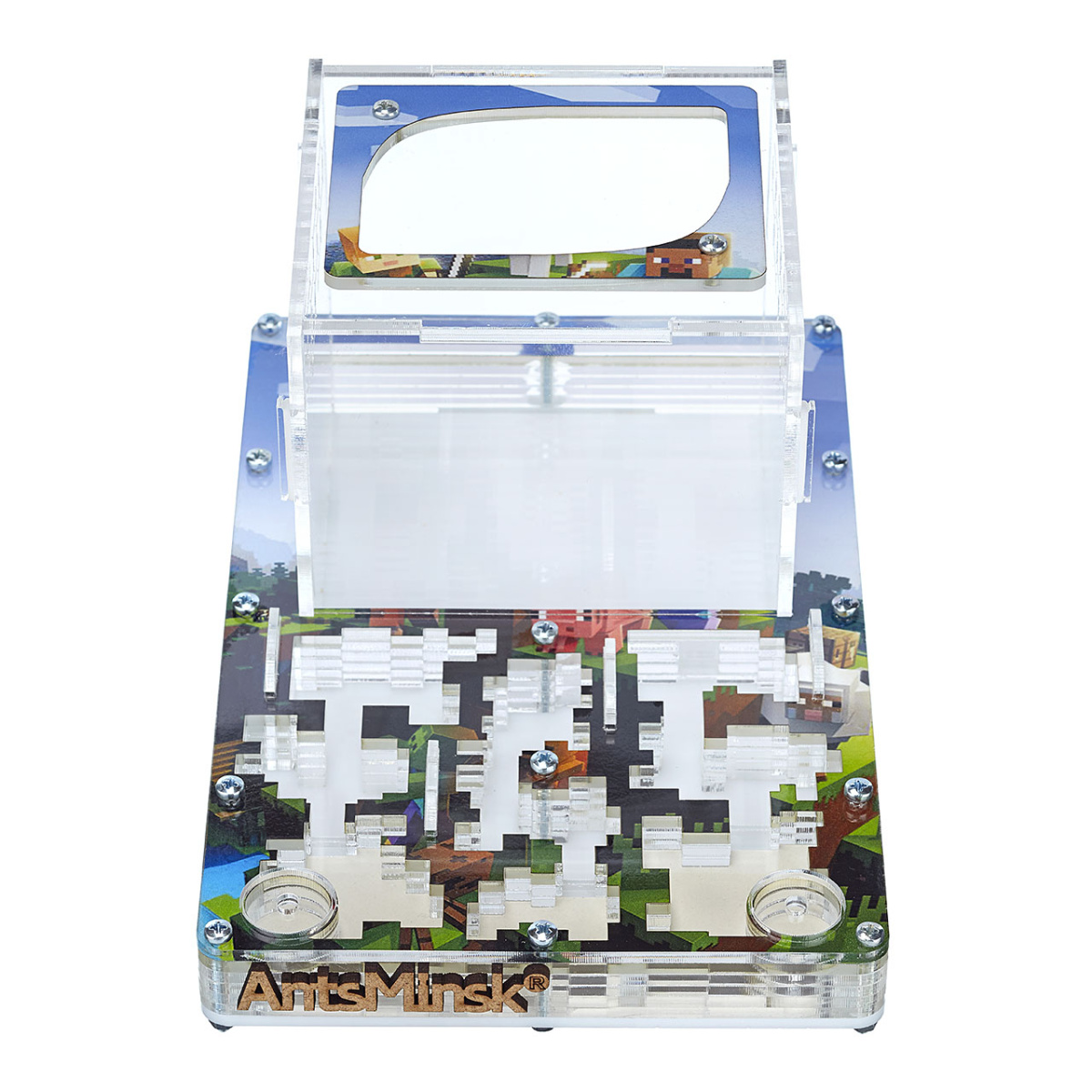 Муравьиная ферма продумана и сделана таким образом, что все детали плотно соединяются между собой, чтобы ни один муравей не смог сбежать, а встроенная вентиляция обеспечивает обмен воздуха. Через прозрачное стекло вы сможете наблюдать полный цикл жизнедеятельности мурашей, от маленького яйца до рождения муравья.