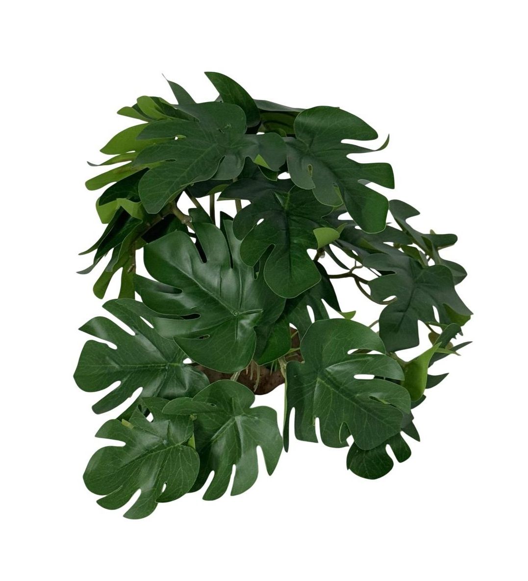 Растения являются важным элементом любого террариума — они создают укрытия и тенистые зоны, а также служат опорой для передвижения обитателей. Одним из очевидных преимуществ искусственных растений является отсутствие необходимости в поливе и уходе. В них не размножаются грибки и паразиты, их легко чистить и дезинфицировать, а срок службы значительно превышает продолжительность жизни живых растений. Для удобства монтажа и дополнительной устойчивости к растению прилагается подставка.