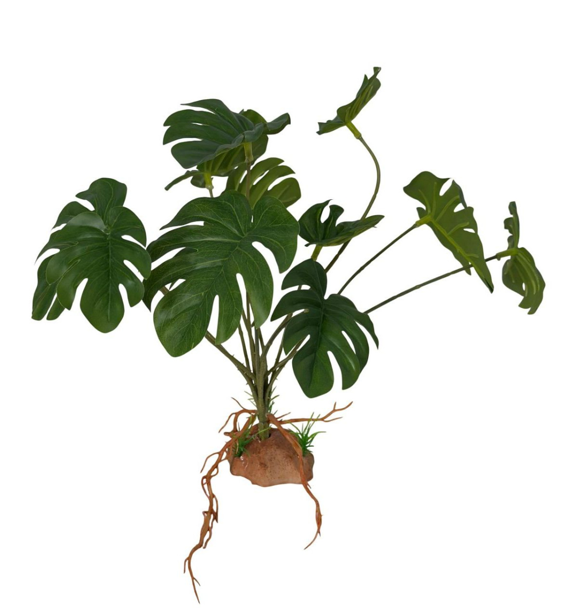 Растения являются важным элементом любого террариума — они создают укрытия и тенистые зоны, а также служат опорой для передвижения обитателей. Одним из очевидных преимуществ искусственных растений является отсутствие необходимости в поливе и уходе. В них не размножаются грибки и паразиты, их легко чистить и дезинфицировать, а срок службы значительно превышает продолжительность жизни живых растений. Для удобства монтажа и дополнительной устойчивости к растению прилагается подставка.